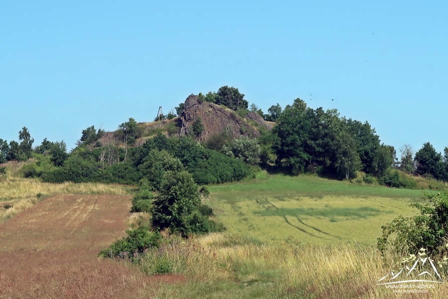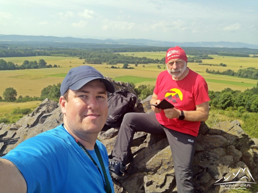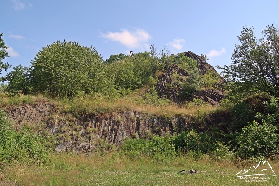 Obchodzimy formację skalną i nieco się wspinamy, a po chwili meldujemy się na szczycie Czartowskiej Skały (463 m n.p.m.). Jest to wzniesienie na Pogórzu Kaczawskim wchodzące w skład tzw. Pogórza Złotoryjskiego. To niewielkie powulkaniczne wzniesienie, w kształcie małego, lekko skrzywionego stożka podciętego z dwóch stron wyrobiskami nieczynnych kamieniołomów.