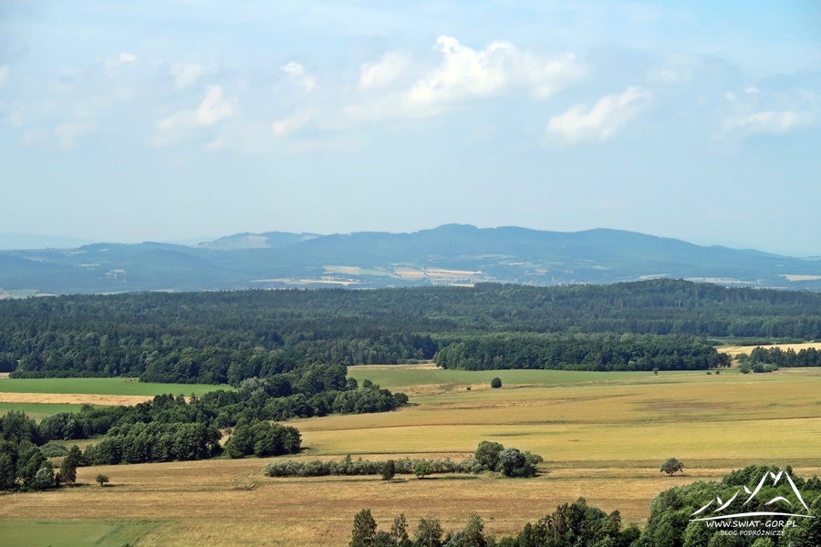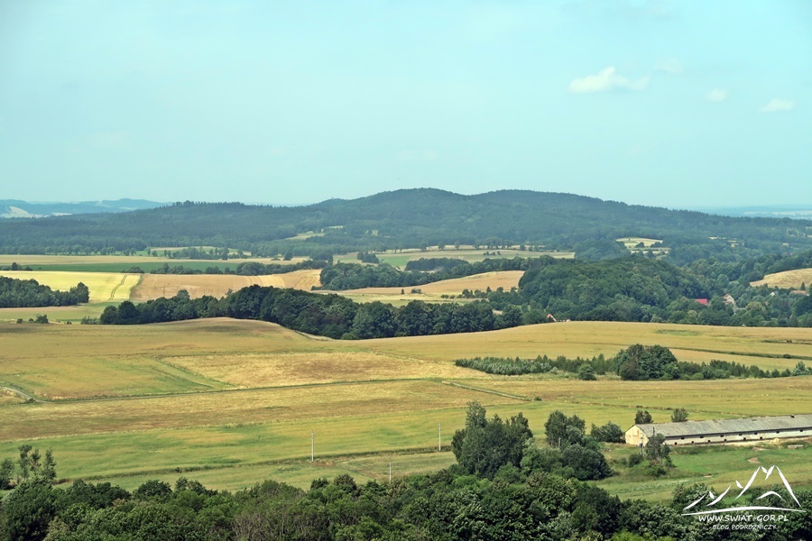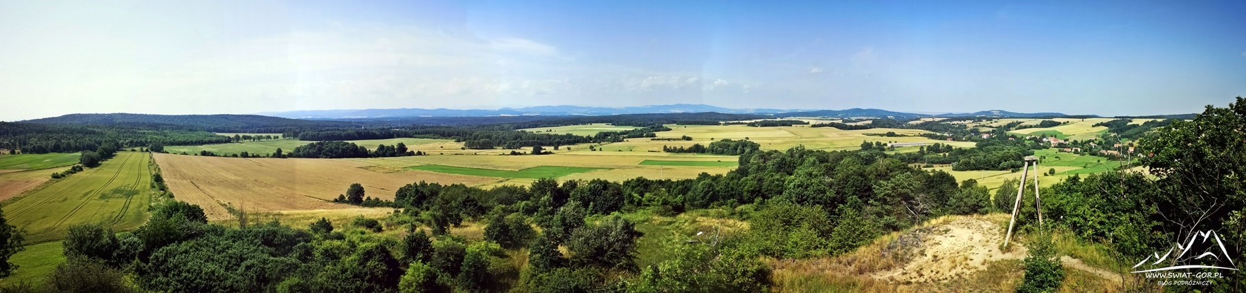 Ze szczytu roztacza się przepiękna panorama widokowa na Góry i Pogórze Kaczawskie. W kierunku wschodnim pojawia nam się widok na Pogórze Złotoryjskie, a dokładniej na Wzgórza Muchowskie. Na południe otwiera nam się widok na Góry Kaczawskie, a dokładnie na Grzbiet Wschodni, Grzbiet Południowy (z najwyższymi szczytami pasma) oraz na Grzbiet Północny z Okolem (718 m n.p.m.). W kierunku wschodnim natomiast pojawia nam się widok na Zawodną (445 m n.p.m.) i okoliczne wzniesienia, a także na kamieniołom bazaltu Krzeniów.