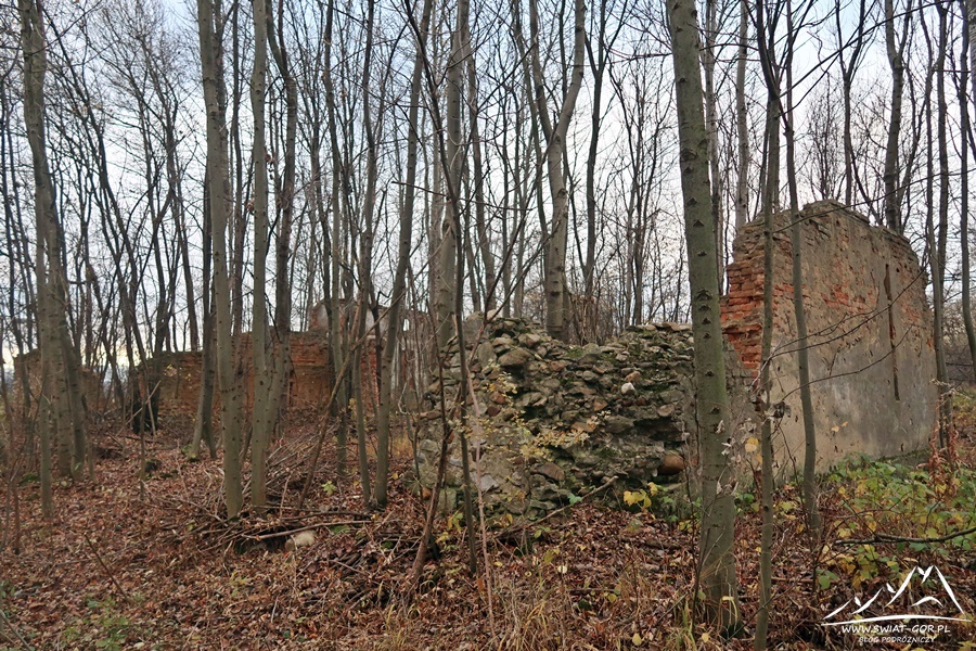 Po przejściu ponad 800 metrów docieram do rozejścia dróg. W prawo skręca Główny Szlak Sudecki, natomiast w lewo idzie nieoznakowana polna droga, którą teraz będę wędrował. Ścieżka wiedzie po łuku w kierunku małego zagajnika przez który przechodzi. Tuż za nim natomiast docieram do zapomnianej osady Tomkowice. Osada powstała prawdopodobnie na początku XIX wieku. Była to dosyć spora wieś, którą w 1939 roku zamieszkiwała kolonia 15 domów i 51 mieszkańców. Niegdyś leżała na granicy z Austro-Węgrami, a potem z Czechosłowacją. W 1945 roku osiedliło się tu 10 rodzin górali z Żywiecczyzny, a Niemców wysiedlono.