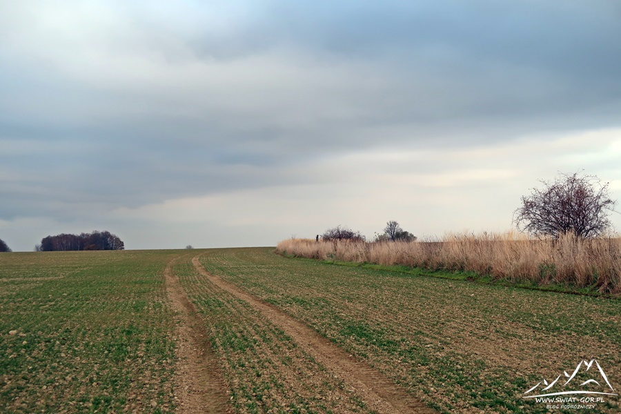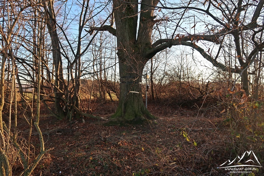 Po przejściu jakiś 600-700 metrów moim oczom wyłaniają się charakterystyczne drzewa, czyli wierzchołek Kalwarii (385 m n.p.m.). Warto wiedzieć, że jest to najwyższe wzniesienie Przedgórza Paczkowskiego po polskiej stronie, które wyrasta w kształcie wyraźnie zaznaczonej kopuły, z łagodnymi zboczami. Powierzchnia wierzchowiny jest tak wyrównana, że najwyższy punkt wzniesienia jest trudno rozpoznawalny z daleka.