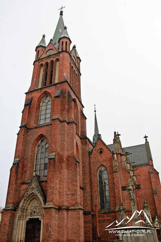 Następnie udajemy się do kościoła św. Katarzyny Aleksandryjskiej w Sławięcicach. Wchodzimy do środka na chwilę, jednak odprawiane jest tam nabożeństwo, dlatego też szybko wychodzimy i przed kościołem Wojtek opowiada nam historię tego miejsca. Kościół Świętej Katarzyny Aleksandryjskiej został zbudowany w latach 1864-1869 w stylu neogotyckim. Fundatorem kościoła był książę Hohenlohe von Oehringen. Świątynia konsekrowana w dniu 6 czerwca 1869 roku przez arcybiskupa Heinricha Förstera. W 1945 budowla została częściowo uszkodzona. Wyremontowana w latach 1963-1964. Na wieży są umieszczone cztery dzwony odlane w latach 1954-1971. Ich nazwy to św. Katarzyna, maryjny, św. Józef i Amanda Droni. Drewniane ołtarze pochodzą z pracowni z Wiednia. Konfesjonały, balustrady i balaski wykonane zostały we Wrocławiu, natomiast rzeźby apostołów i stacje drogi krzyżowej powstały w Monachium.