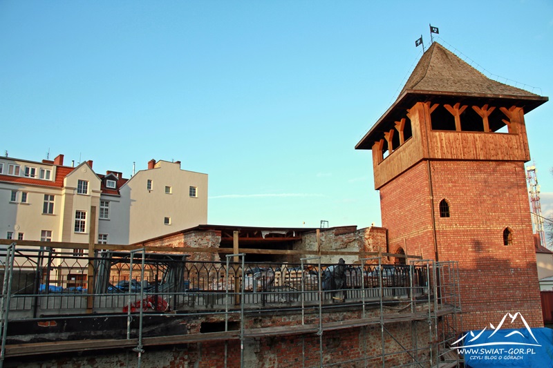Nasza wycieczka powoli zmierzać ku końcowi, z Baszty Montalamberta udajemy się do Koźla w okolice tamtejszego zamku. Przed nami teraz krótki spacer po tej części miasta. Na początek wysiadamy przy zamku, który obecnie pełni funkcję muzeum. Wojtek opowiada nam historię tego miejsca, z której dowiadujemy się że jakiś czas temu odbudowano wieżę, tylko, że nikt nie pomyślał aby odbudować ją nieco wyższą tak aby był jakiś widok (obecnie wieża jest niższa niż otaczające ją budynki).