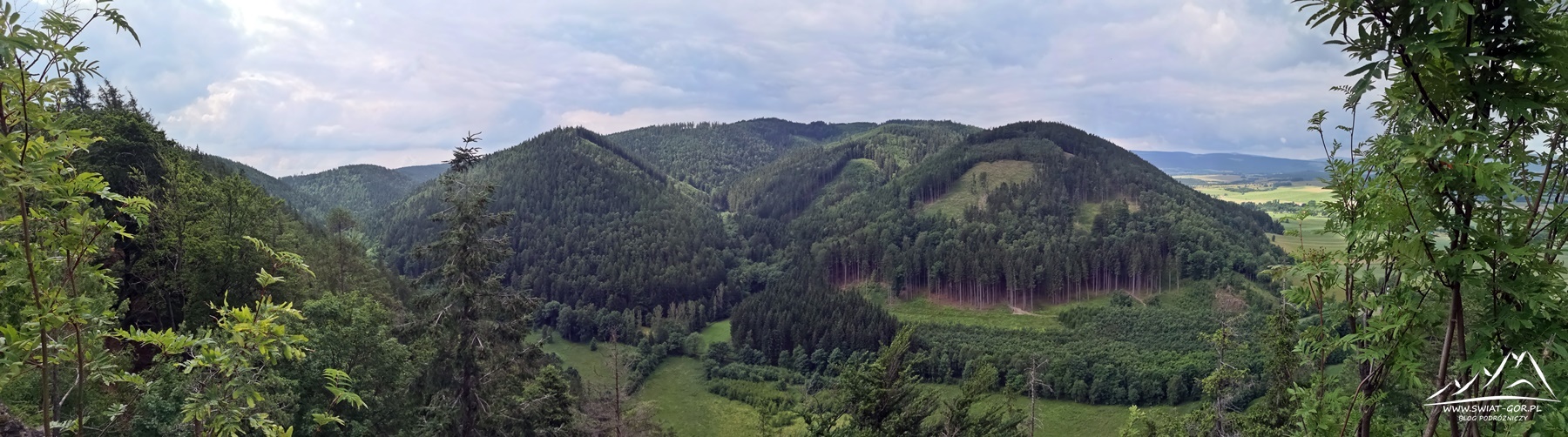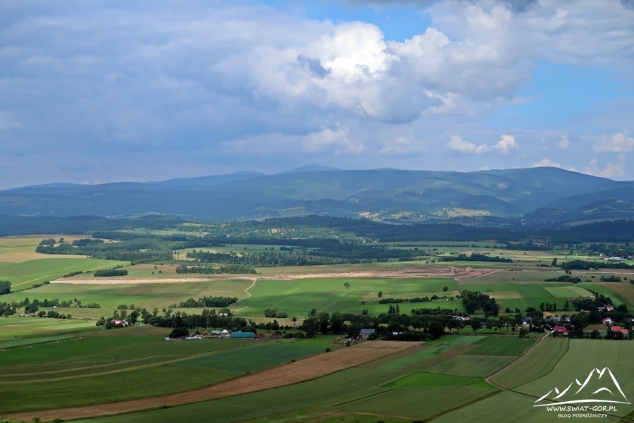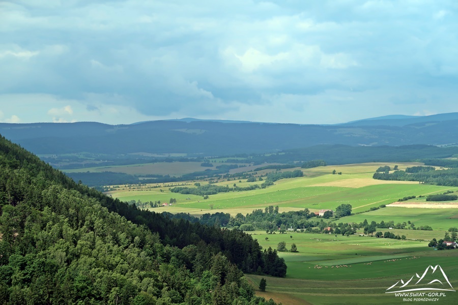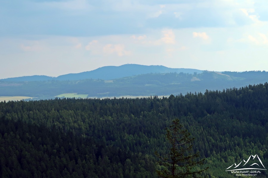 Na szczycie organizujemy dłuższą przerwę na odpoczynek i analizę panoramy, ta bowiem jest bardzo ciekawa. W kierunku wschodnim możemy dostrzec Góry Wałbrzyskie, a dokładnie masywy Chełmca (851 m n.p.m.) i Trójgarbu (778 m n.p.m.). Zaś na północy na pierwszym planie znajduje się Święta Góra (701 m n.p.m.) i inne szczyty Gór Kruczych. Natomiast w kierunku północno-zachodnim otwiera nam się widok na Rudawy Janowickie ze Skalnikiem (945 m n.p.m.) czy Wielką Kopą (871 m n.p.m.). Dalej pojawia się widok na Karkonosze z widocznymi grzbietami Kowarskim i Lasockim, a także ze Śnieżką (1603 m n.p.m.). Dalej pojawia się panorama na czeską część Karkonoszy m.in. z Cerną Horą (1299 m n.p.m.). Na południe od nas znajduje się Krucza Dolina i pozostała część Gór Kruczych.