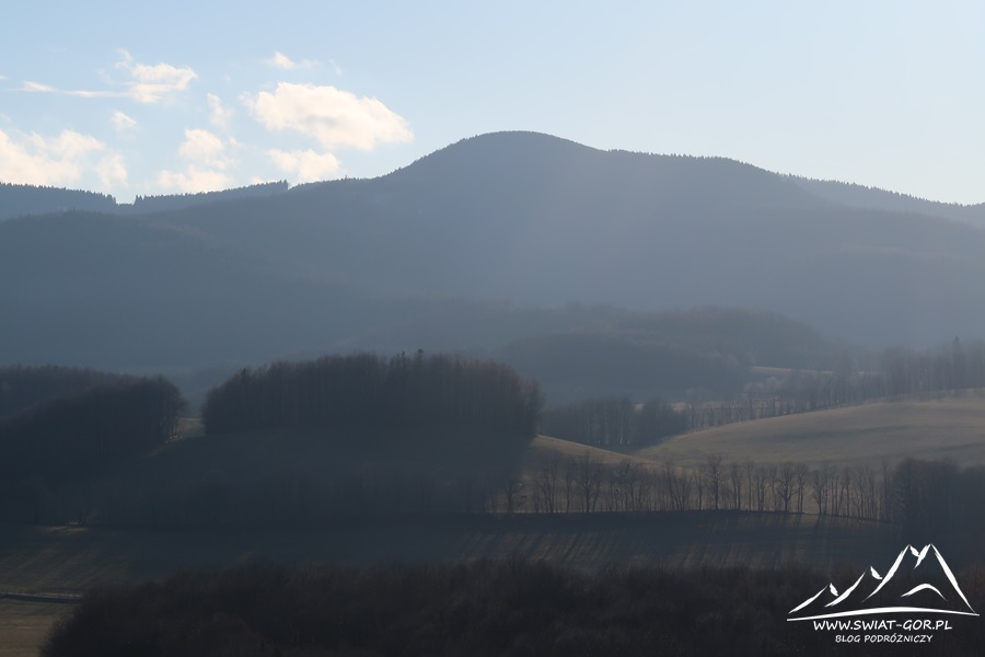 Na szczycie spędzamy prawie 20 minut podziwiając wspaniałe widoki. Niestety przeszkadza nam trochę wiejący zimny wiatr, dlatego też w pewnym momencie decydujemy się ruszyć w drogę powrotną. Przed nami na dziś jeszcze jeden cel do zdobycia – Kani Hora (476 m.n.p.m.), dlatego też dosyć szybko schodzimy, wsiadamy do samochodu i ruszamy w dalszą drogę.