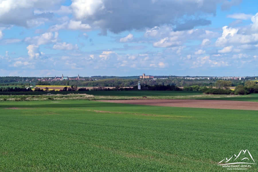 Chwilę później ruszam w drogę powrotną w kierunku Trzebini. Wracam oczywiście tą samą drogą, którą tutaj dotarłem, a gdy melduję się przy samochodzie przede mną otwiera się przepiękna panorama widokowa na Góry Opawskie oraz oddalony Prudnik. Tak więc chwilę poświęcam jeszcze na podziwianie widoków i robienie pamiątkowych zdjęć. Następnie wsiadam do samochodu i ruszam w drogę powrotną do Nysy, którą przerywam po przejechaniu 100-200 metrów, bowiem z lewej strony otwiera się kolejna ciekawa panorama z widokiem na m.in. Biskupią Kopę (890 m n.p.m.) czy Długotę (457 m n.p.m.) z Prudnickim Lasem.