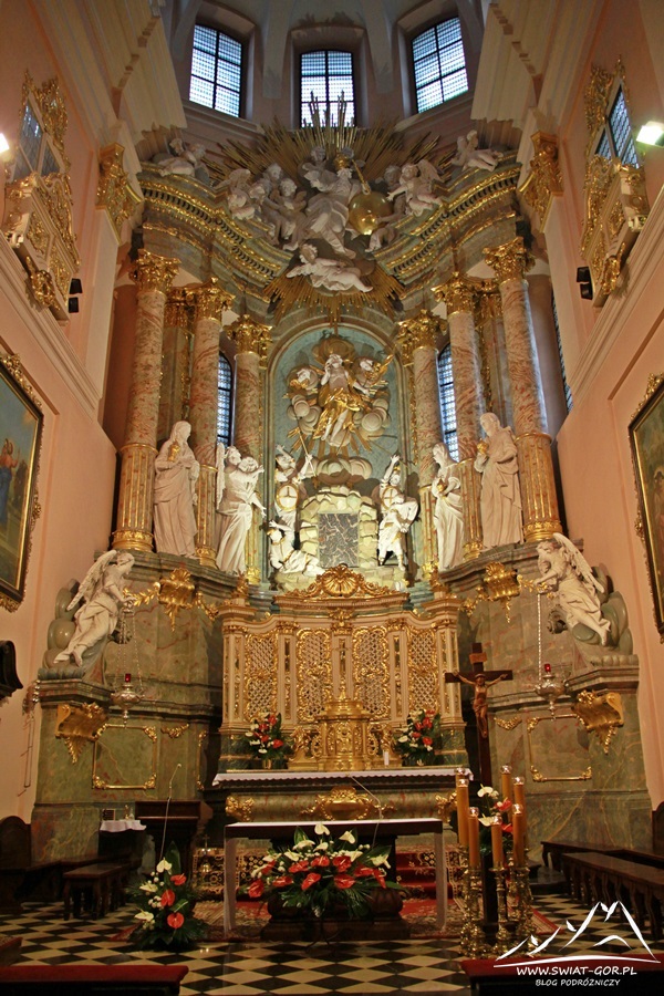 Dzisiejszy wygląd pochodzi z przebudowy dokonanej w XVIII wieku w stylu barokowym. Wnętrze świątyni robi niesamowite wrażenie. Po bokach nawy głównej znajdują się liczne boczne ołtarze. Na uwagę zasługuje jednak prezbiterium z głównym ołtarzem wykonanym w stylu rokokowo-klasycystycznym, który złożony jest z trzech części: