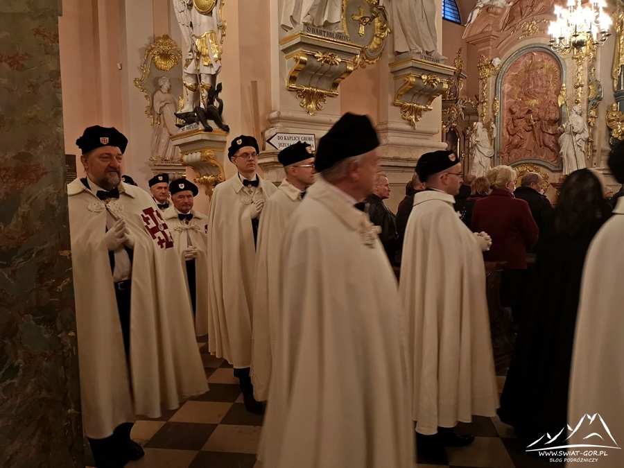 Punktualnie na godzinę 16:00 zgodnie z planem wydarzenia w Bazylice Grobu Bożego odbyła się msza dziękczynna za 650. lat obecności Bożogrobców w Polsce pod przewodnictwem Jego Ekscelencji Ks. Bp. Jana Piotrowskiego, biskupa diecezji kieleckiej, w której wziąłem udział tylko chwilę bowiem godzina już późna, a przede mną jeszcze kilka godzin drogi powrotnej do Nysy. Niemniej jednak ciekawym przeżyciem było zobaczyć członków zakonu w ich oficjalnych strojach, którzy uczestniczyli we mszy świętej.
