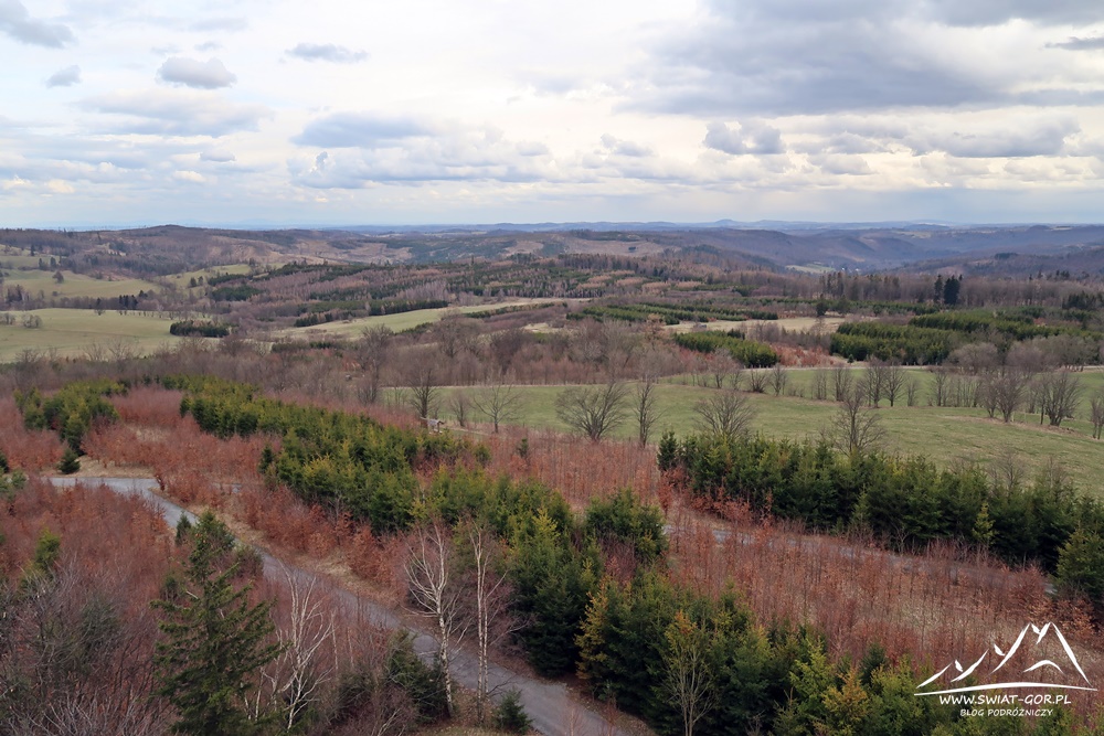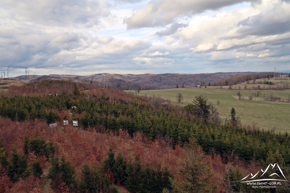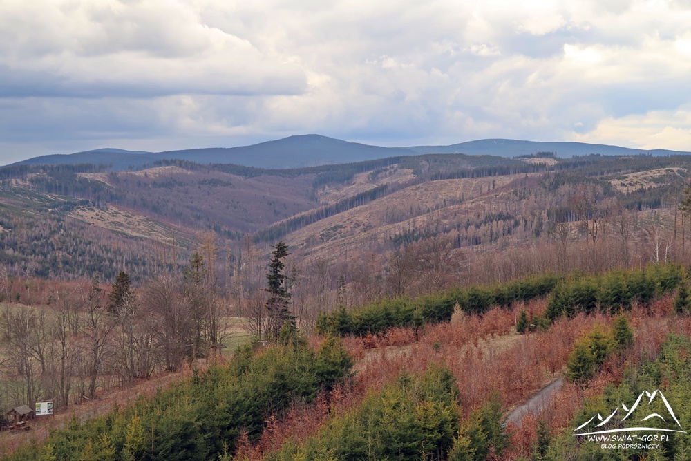 Szybko więc docieramy do niej i ruszamy na górę. Sama wieża widokowa o nazwie na Skalce, znajduje się na wysokości 755 m n.p.m. na południowych stokach Morawskiego Kopca. Drewniana konstrukcja została wzniesiona w 2013 roku. Z samej góry roztacza się wspaniała panorama widokowa m.in. na Wysoki Jesionik. Świetnie widać Wysoką Holę (1465 m n.p.m.), Pradziada (1491 m n.p.m.), Małego Dziada (1369 m n.p.m.), Medvedi Vrch (1216 m n.p.m.) czy Orlik (1204 m n.p.m.).