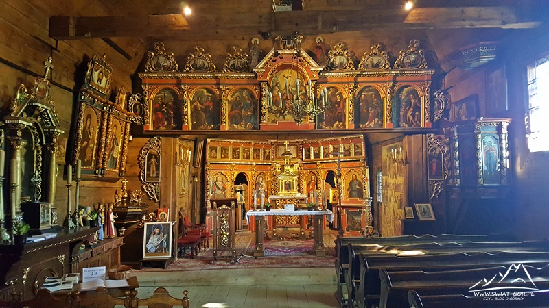Na tym kończę zwiedzanie Muszyny. Miejscowość mnie zauroczyła. Niewielkie miasteczko, z wieloma atrakcjami, idealne na odpoczynek. Teraz ruszam w drogę powrotną do Krynicy. Nim tam jednak dotrę po drodze planuję udać się jeszcze na szlak architektury drewnianej województwa małopolskiego i odwiedzić cerkiew w Powroźniku. Miejscowość Powroźnik położona jest tuż przed Muszyną jadąc od Krynicy. Szybko docieram na miejsce, zostawiam samochód na parkingu i ruszam na zwiedzanie tej drewnianej cerkwi, która zwłaszcza wewnątrz robi ogromne wrażenie.