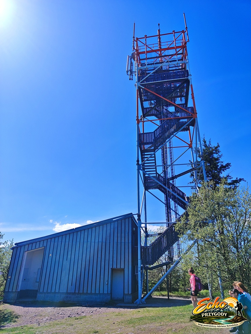 Największą ciekawostką szczytu jest stalowa wieża telekomunikacyjna z ogólnie dostępnym tarasem widokowym, zbudowana w 2002 roku, na którą właśnie wchodzimy. Pogoda nam dziś sprzyja dlatego jesteśmy pewni, że widoki z wieży będą niesamowite. I mamy rację!
