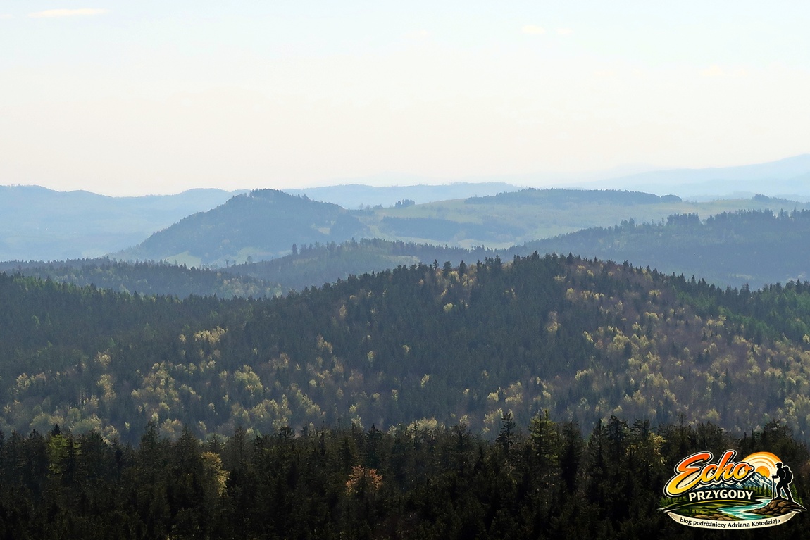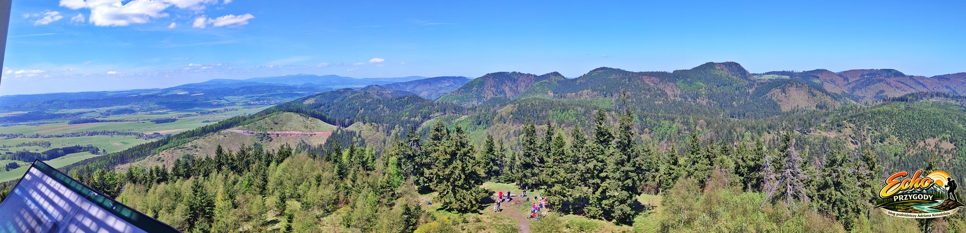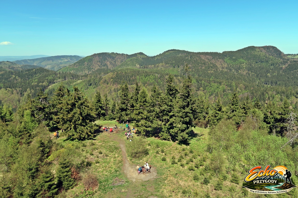 Docieramy do rozdroża pod Szpicakiem i robimy krótką przerwę. Przed nami najtrudniejszy odcinek – około 900 metrów podejścia i blisko 140 metrów przewyższenia. Wchodzimy na zielony szlak graniczny i zaczynamy strome podejście. Trzeba przyznać, że podejście daje w kość. W końcu około godziny 12:00 naszym oczom wyłania się wieża widokowa, a to znak, że jesteśmy na szczycie.