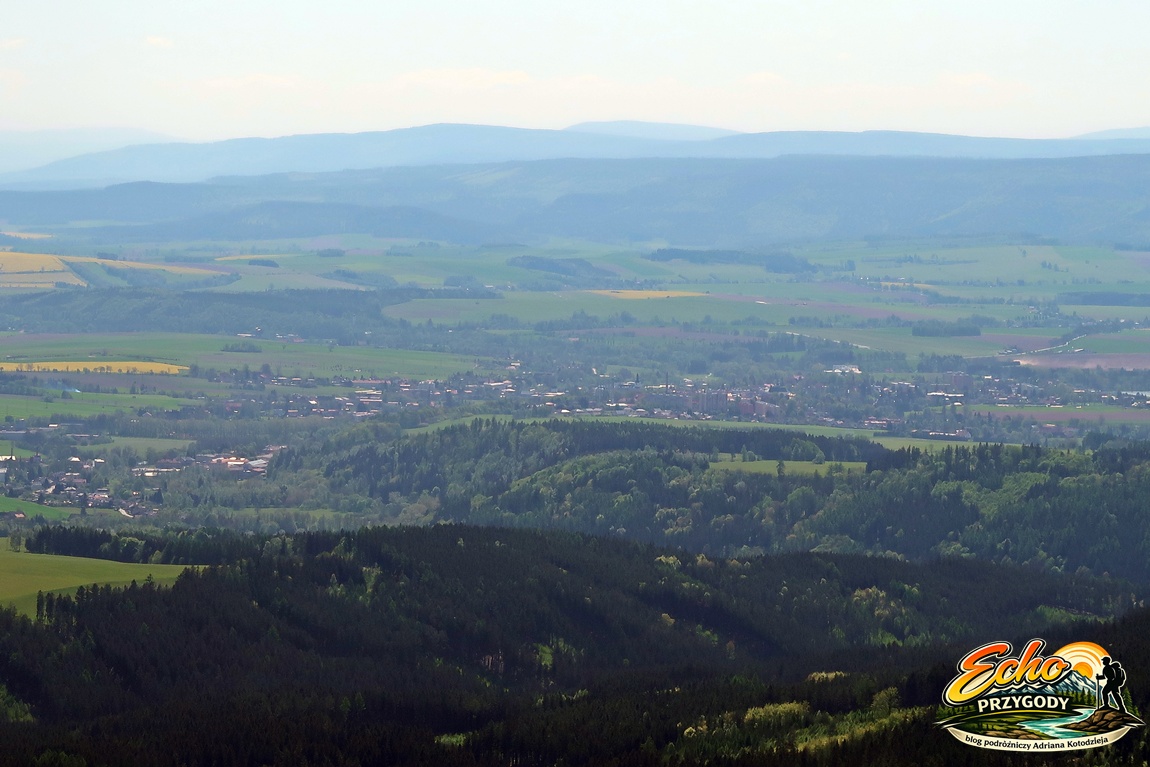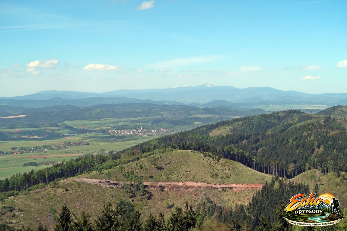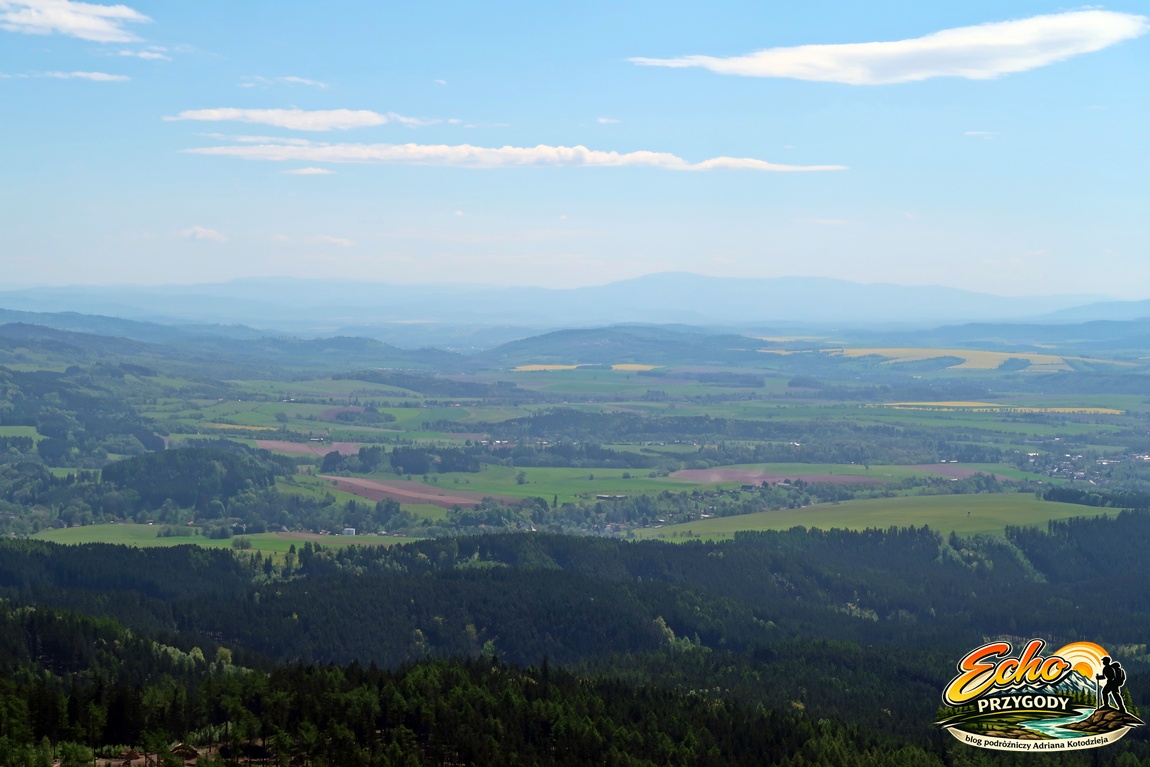 Przy dobrej pogodzie widać m.in. Karkonosze ze Śnieżką, Góry Sowie, Góry Stołowe, Masyw Śnieżnika oraz Broumovsko w Czechach.