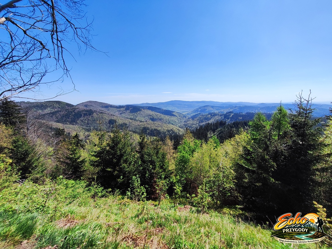 Kontynuujemy nasz marsz i około godziny 14:00 meldujemy się na przełęczy. W ten sposób kończymy pierwszą część naszej wycieczki. Wsiadamy do auta i ruszamy do Grzmiącej, na parking pod Gomólnikiem Małym (809 m.), który teraz będzie naszym celem, ale o tym w osobnej relacji.
