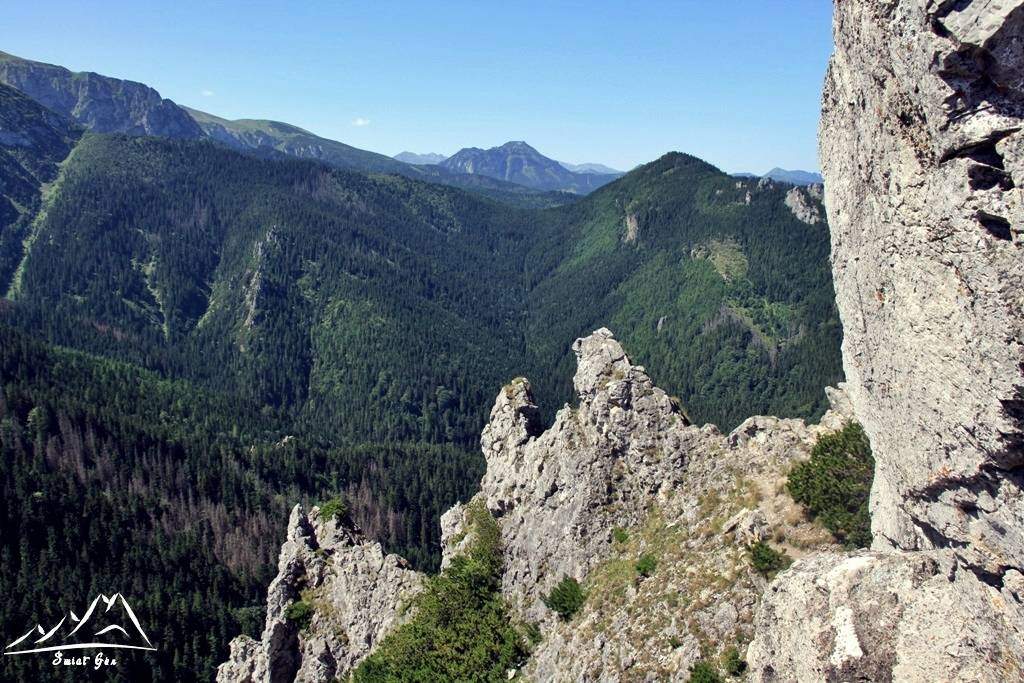Po pewnej chwili dostrzegamy z góry, że na Sarnią Skałę (1377 m.n.p.m.) zbliża się pierwsza z wycieczek. Niestety jesteśmy zmuszeni ruszyć w dalszą drogę, nie chcemy siedzieć w tłumie i krzykach na szczycie, więc postanawiamy schodzić. Przy zejściu mijamy jeszcze 3 wycieczki, stwierdzamy, że podjęliśmy dobrą decyzję. Ciężko byłoby wysiedzieć z trzema wycieczkami na szczycie Sarniej Skały. Na Czerwonej Przełęczy nie zatrzymujemy się i od razu rozpoczynamy zejście do Doliny Strążyskiej.