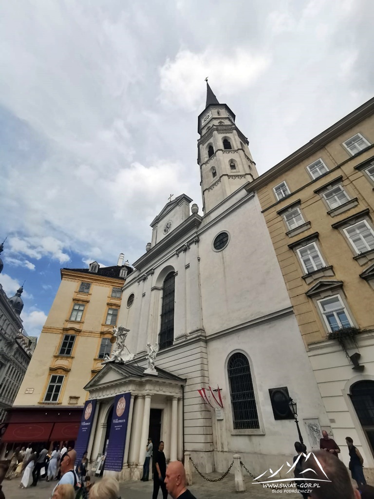 Plac o którym wspomniałem wyżej nosi nazwę kościoła św. Michała , który znajduje się we wschodniej części. Jest to jeden z najstarszych kościołów w Wiedniu, a także jeden z niewielu zachowanych budynków romańskich. W swojej długiej historii, obejmującej ponad osiem wieków, kościół obejmował mieszankę stylów architektonicznych. Kościół jest budowlą późnoromańską , wczesnogotycką, datowaną na lata około 1220-1240. Kościół św. Michała był niegdyś kościołem parafialnym dworu cesarskiego.